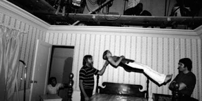 Regan/demonio vuelve a girar la cabeza 360º; Karras se queda de nuevo, alucinado; después, Regan/demonio comienza a hacerle sentir un mal hijo a Karras, diciéndole que dejó sola a su madre...; y luego, llega una de las escenas más recordadas y flipantes de la película; la levitación del cuerpo de Regan con los ojos en blanco.